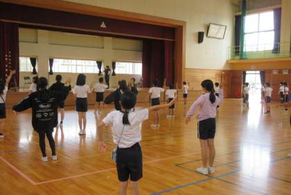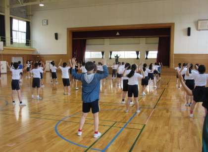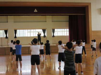 講師の先生にダンスを教えていただきました。早速、休み時間に教室で踊っている子供たちの姿も見られました。