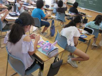 家の人に教えてもらいながら、動画や教科書を確認しながら、どの子も集中して取り組み、片付けまでしっかり行うことができました。