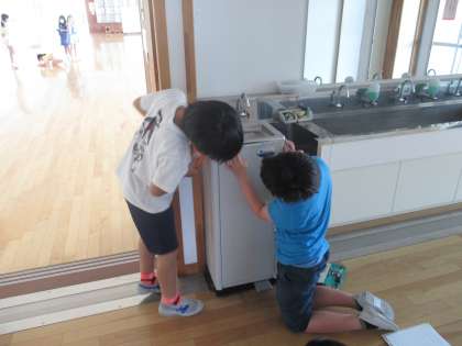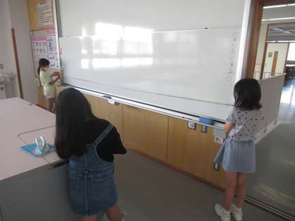 算数の授業で、長い長さの学習をしています。今日の授業では巻き尺を使って、学校のいろいろな場所や物の長さを測ってみました。