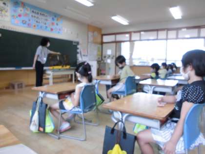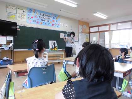 今日は、「おまえうまそうだな」と「やさいのおなか」という本を読んでいただきました。恐竜の心温まる交流を描いた本には、子供たちが引き込まれていました。野菜の切り口のシルエットを見て、子供たちは知っている野菜をクイズのように答えていました。