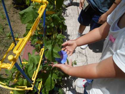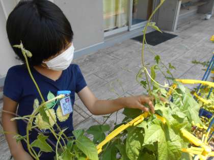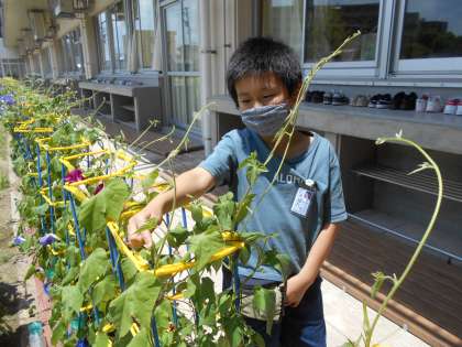 国語科の「おおきくなった」では、アサガオの葉っぱやつる、つぼみや花を今まで以上に詳しく観察しました。観察して分かったことから「大きさ」「色」「形」などの観点を決め、観察カードに言葉で書きました。また、観察して分かったことが伝わるように丁寧に絵を描きました。