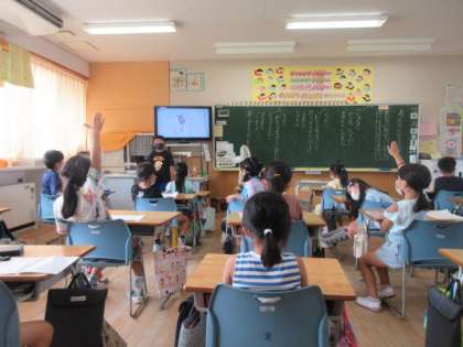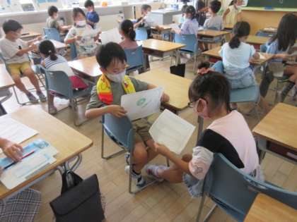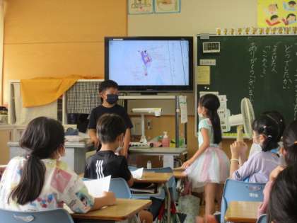 国語科で、自分があったらいいなと思うものを考え、友達に伝える学習を行いました。「空を飛べるはねがあったらいいな」「どこにでも行けるボタンで、いろんな国に行きたいな」と想像し、自分が考えたものを、友達と楽しく伝え合っていました。