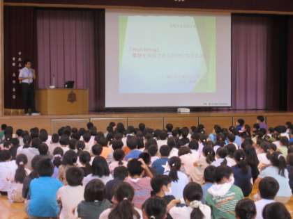 体育館で行った始業式では、「Well beingな2学期になるよう一人一人できることを考えて行動に移そう」という校長先生の話を、子供たちはうなずきながら聞いていました。その後、2学期の生活について養護教諭と生徒指導主事から話を聞きました。生活リズムを戻して、2学期もみんなで幸せを実感できる学校づくりを目指していきたいです。