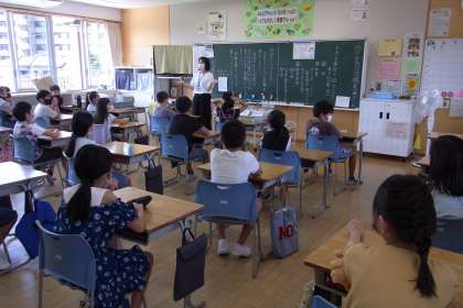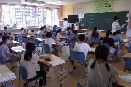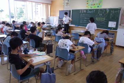 2学期がスタートしました。夏休みの思い出を話したり、作品を紹介したりしました。そして、早速2学期の目当ても書きました。2学期も目標をもって、いろいろなことに挑戦していきましょう!