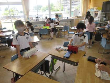 夏休みをの自由研究の紹介を行いました。それぞれが調べたことや作ってきたものを、友達に発表し、夏休みに頑張った成果を伝え合っていました。