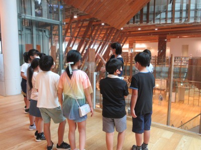 4年生 ガラス美術館・市立図書館見学 公開日 2022/09/02 更新日 2022/09/02 4年生のページ 富山市ガラス美術館・富山市立図書館本館を見学してきました。 ガラス美術館では、素敵な作品を見学し、色や形、壁や台に写る光や影のおもしろさを「きれい!」、「○○に見えるよ」と友達と感想をたくさん伝え合いました。 市立図書館では、本が保管されている書庫にも入りました。学校の図書室よりも多い本の中には見たこともないような古い本を見つけていました。