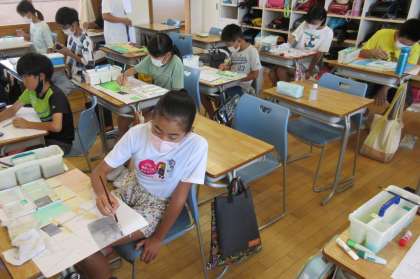 子供たちの作品も仕上がりに近づいてきました。心を込めて描いています。