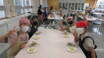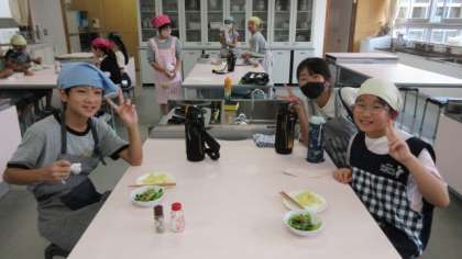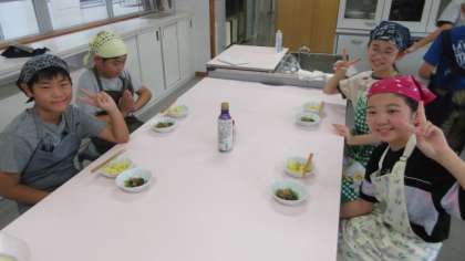 調理後、みんなでおいしくいただきました。「おかわりほしい!」と言う子供もいました。それくらいおいしく調理できたのですね。