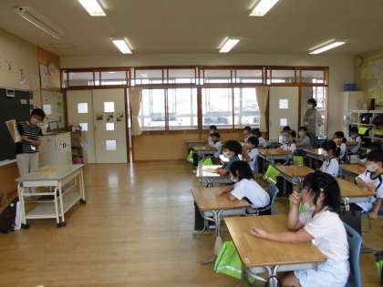 今週は「どろんこハリー」と「パンダのびっくりプレゼント」いう本を読んでいただきました。泥だらけになった犬のハリーのお話と果物がたくさん出てくる絵本でした。わくわくしながらお話の展開を楽しんだり、断面の絵を見て果物の名前を当てたり、とても楽しい時間になりました。