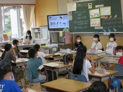 多くの先生方が来られた中、子供たちはのびのびと自分の思いを表現したり、友達の考えに真剣に耳を傾けたりと、がんばって授業に取り組んでいました。