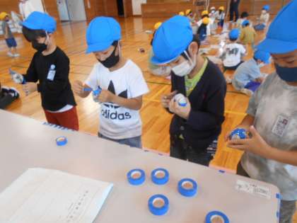 今年の玉入れは、自分で作ったラッキーボールを投げることができます。子供たちは、思い思いの大きさのラッキーボールを作りました。体育の時間だけでなく、パワーアップTOBUでも投げる練習をしていきます。
