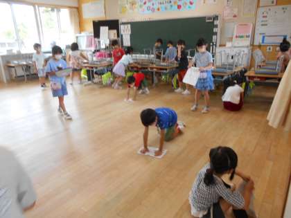 教室や黒板、廊下等、朝清掃の時間に学校をきれいにしています。みんなで協力して机を運んだり、動かせるものを動かして雑巾がけをしたりして、学校がきれいになるように頑張っています。