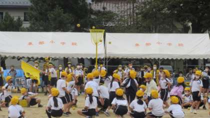 運動会予行 1・2年生 大逆転!?ラッキー玉入れ