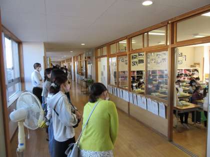 その後、子供たちの準備・食事の様子を参観していただきました。黙食での給食でしたが、子供たちが配膳をしたり、おいしそうに給食を食べたりしている様子を見ていただくことができました。