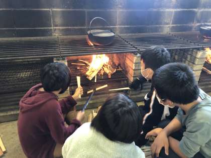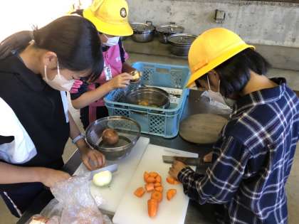 初めての野外炊飯は、班の仲間と協力して頑張りました。一生懸命火起こしをして、ご飯とカレーを作りました。自分たちで作ったご飯は、よりおいしく感じていました。