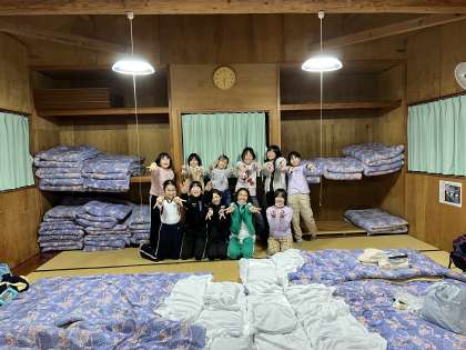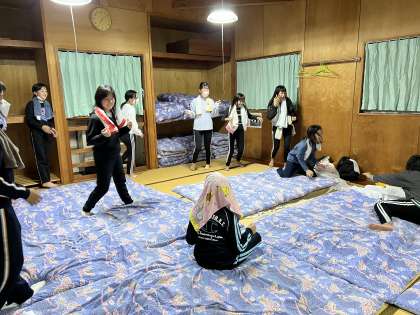 自分達で布団の準備をしました。班で協力する姿が見られました。