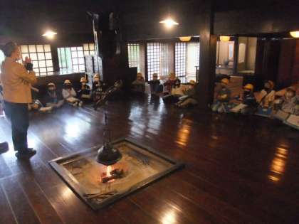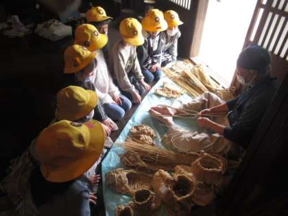 いろりの火の匂いや暖かさを実感したり、わら靴作りの実演の後、実際に履かせてもらったりしました。校外学習を通して、普段の生活ではできない体験ができました。