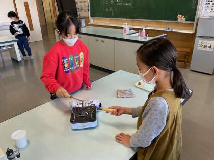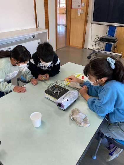金属は温度によって体積が変わるのか調べています。空気や水のときと比べて変化の大きさに違いはあるのか実験を通して確認しました。