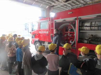 社会科の学習として富山消防署東部出張所に消防署見学に行きました。