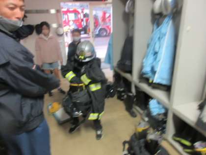 できるだけ速く火事の現場にかけつけ、すばやく消火するための消防士の方の取組を、たくさん学びました。東部出張所のみなさん、ありがとうございました。