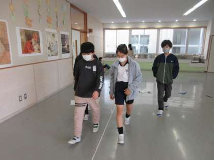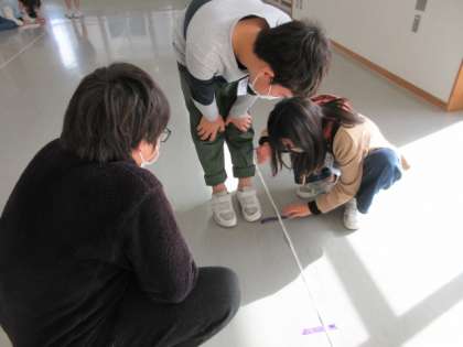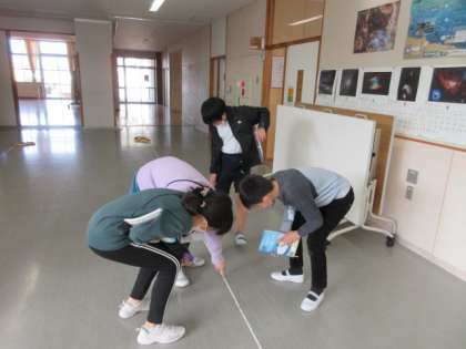 算数科で、平均の学習をしました。学習したことを生かして、実際に歩いた距離を測り、平均を求める式を使って自分の歩幅を調べました。