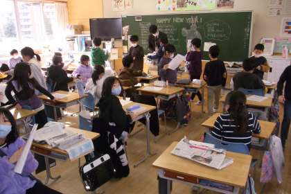 3年生の学級活動に様子です。提出物を出したり、これまでに書いた書初めの半紙を束ねたりと冬休み中の取り組みを振り返っていました。上学年に向かってみんなで成長していきましょう!