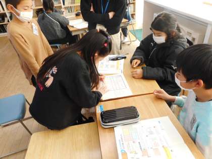 3学期の学習がスタートしました。国語では、お気に入りの詩を探して書き写したり、算数では、陣地取りゲームをして広さを比べたりしました。