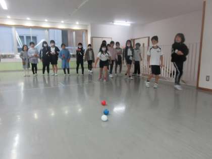 今朝は、パラリンピックスポーツのボッチャをして遊びました。