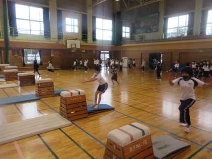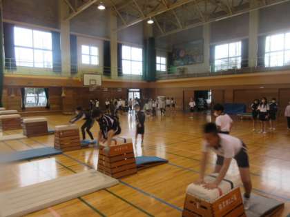 また体育では、跳び箱運動に取り組んでいます。踏切や着手のポイントを大切にして、子供たちはぴょんぴょん、跳び箱を跳んでいます。苦手な子も、何度も挑戦して、上手に跳べるようにがんばっています。