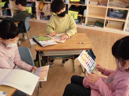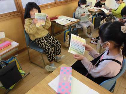 100までの数のならびかたを調べました。数の表をたてや横に見て気づいたことを話し合いました。