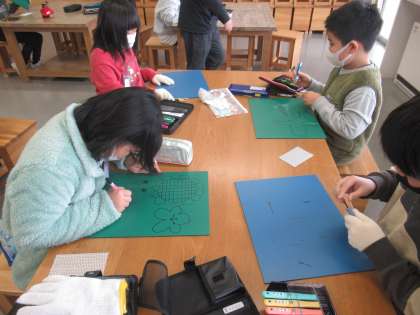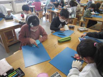 図工では、版画に挑戦しています。いよいよ下書きを終え、彫刻刀を使って彫り始めました。初めは恐る恐る彫っていましたが、徐々に慣れてきました。初めての版画の作品が、どのように仕上がるのか楽しみです。