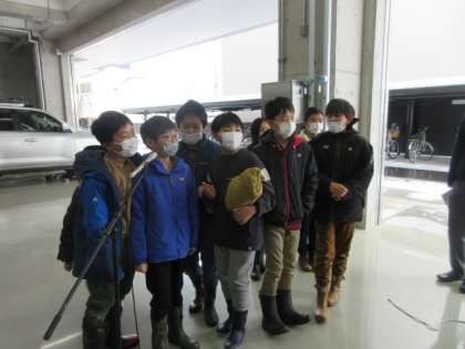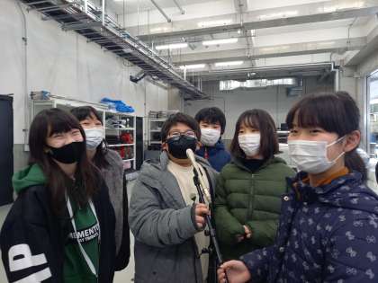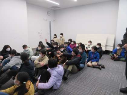NHK富山放送局に行きました。全体でテレビ局についての話を聞いた後は、中継車を見たりマイクやカメラを使う体験をしたりしました。