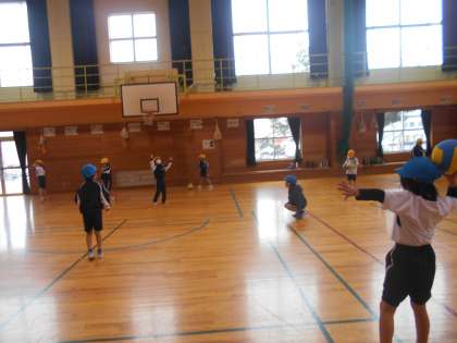 今日から体育では、ボール投げゲームが始まりました。ボール蹴りゲームの時と同じように、ボールと仲良くなって、自分が思ったところに投げたり、落とさないようにキャッチしたりして、様々なゲームで楽しみたいと思います。
