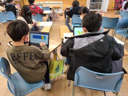 国語科「楽しかったよ、2年生」で、2年生の思い出を振り返って作文を書く学習をしています。パソコンのジャムボードを用いて、「したこと」「思ったこと」「友達との関わり」を分類しながら、友達と楽しく思い出を振り返ることができました。