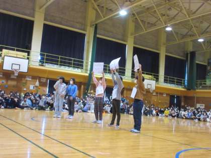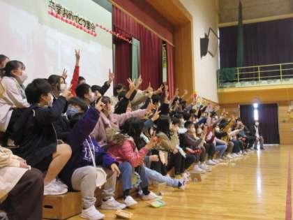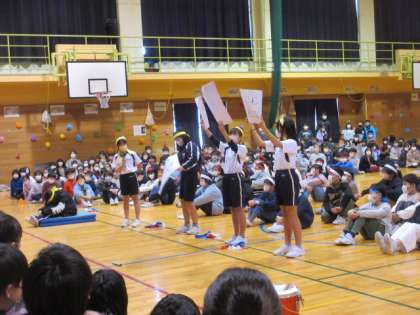 5年生は、飾りを付けたり、クイズを考えたりなど、集会の企画をがんばりました。この集会を通して、6年生にこれまでの感謝の気持ちを伝えることができました。