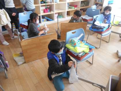 机やいすの脚のほこり、ロッカーや机の中の汚れ、下駄箱の砂をきれいにしました。普段掃除しないところなのでたくさんのごみがとれ、教室や玄関がピカピカになったので、気持ちよく1年を終えることができそうです。