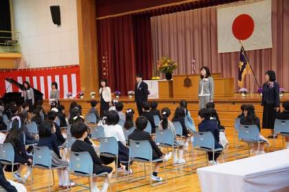元気いっぱいの新入生83名が、新たに東部っ子の仲間入りをしました。瞳をきらきらと輝かせ、小学校生活の第一歩を踏み出しました。