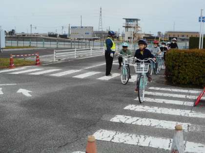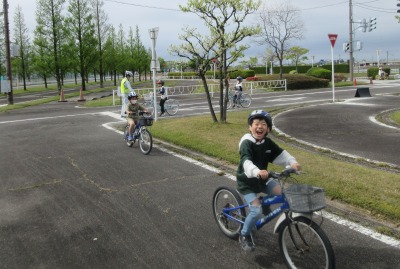 交通博物館に行き、自転車教室を行いました。自転車に乗っての踏切の渡り方、見通しの悪いところでの進み方を学び、実際にコースを走ってみたり、自転車の交通ルールを聞いて、○×クイズに挑戦したりしました。
