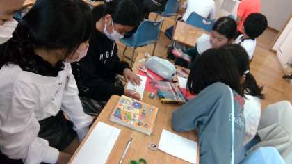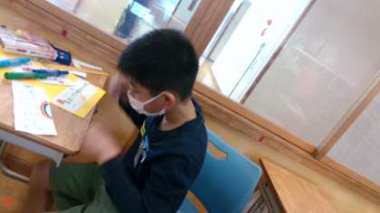 それぞれの係で、どうやってクラスのみんなを楽しませたり、自分たちも楽しんだりして活動に取り組もうかを考えながら、夢中になってカードを作る様子が見られました。