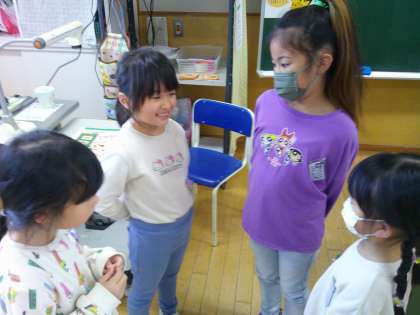 好きな色や季節、休日の出来事等について、グループで話をして仲を深めました。