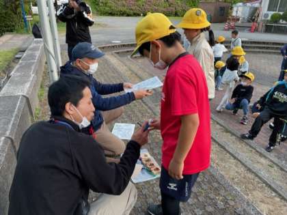 夕日が沈んだ薄暗い中、校長先生から手形を受け取り月光ハイクに向かいました。懐中電灯で足元を照らしながら、地図を見てルートを確認している姿がたくさん見られました。励まし合いながらゴールしました。