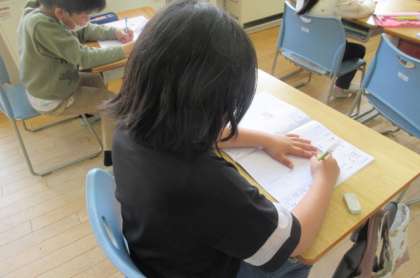 姿勢を正して、新出漢字を丁寧に書いています。