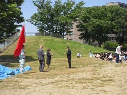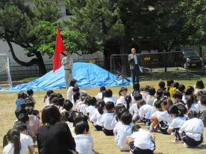 授業中に出火という想定で、避難訓練を行いました。今年度初めて全校そろってグラウンドに避難しました。子供たちは真剣な表情で避難していました。話を聞く態度もよかったです。