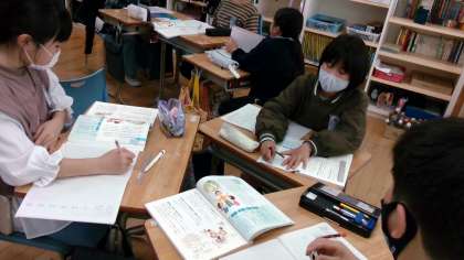 国語科でインタビューの学習をしています。テーマを決めて質問と予想される答えを考えてから、話し手、聞き手、記録に役割分担をして取り組みました。