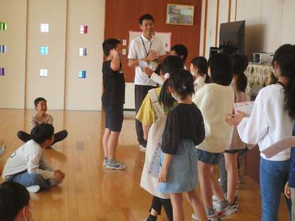 学年のみんなで集まり、レクリエーション担当の子供たちが考えた遊びをみんなで行いました。「じゃんけん列車」や「マジカルバナナ」をして楽しみました。また、賞状担当の子供たちから宿泊学習で見付けた「○○賞」の受賞も行いました。笑顔がたくさん見られる楽しい時間になりました。