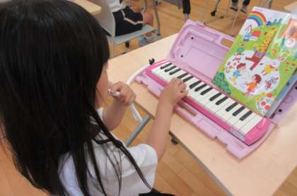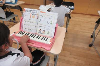 音楽科の学習では、鍵盤ハーモニカで「かっこう」を演奏しています。