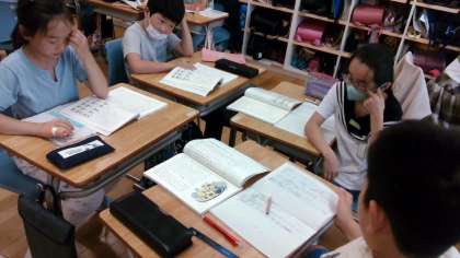 今日は、全文を読んで、どの段落に筆者の考えが書かれているかを探し、文章の構成を捉えました。