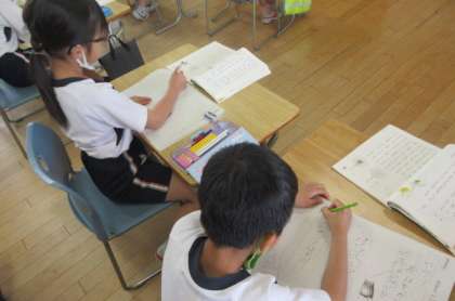 国語科「たんぽぽのちえ」の学習では、たんぽぽがどのような知恵を働かせているのかを図鑑にまとめました。種を太らせたり種を遠くまで飛ばしたりすることが分かり、「すごい」「初めて知ってびっくりした」等、感想も書きました。