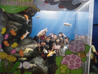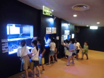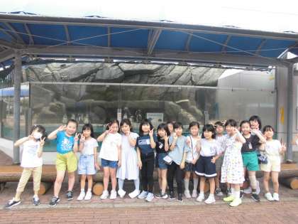 今日、魚津水族館へ遠足に行きました。生き物を見てクイズに挑戦したり、生き物の絵を描いたりしました。班の友達と仲良く楽しく活動することができました。