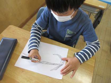 昨日、魚津水族館で様々な生き物を見て、心に残った生き物をスケッチしました。